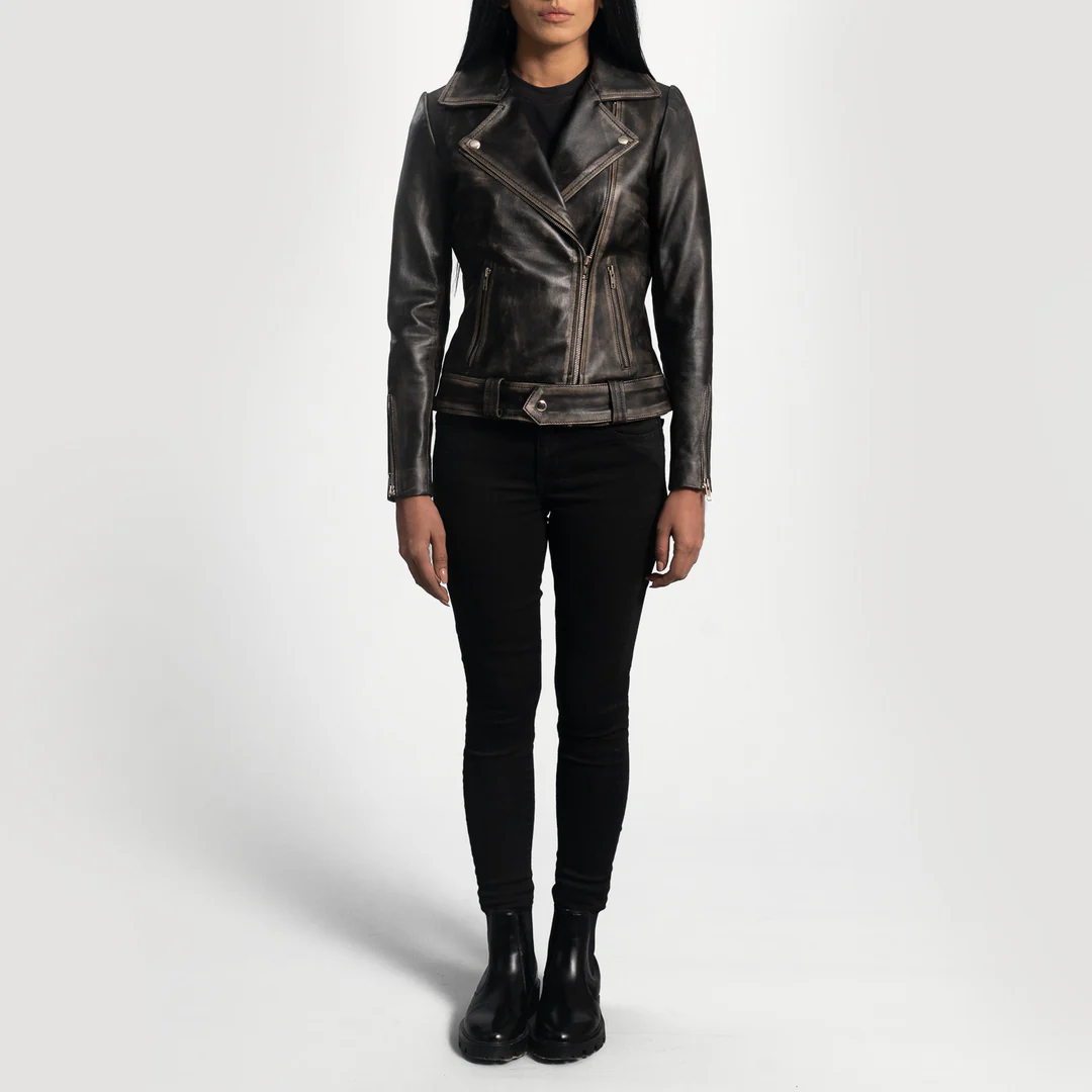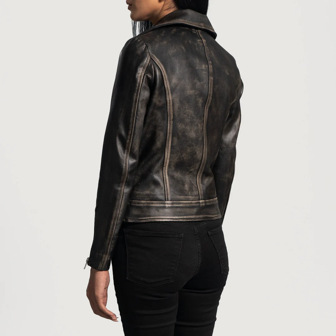 The Rumy Distressed Brown Biker Jacket is defined by its striking rub-off finish. Each jacket undergoes a specialized treatment process where the top layer of pigment is hand-burnished to reveal lighter tones beneath. This creates a multidimensional, weathered patina that mimics decades of wear, ensuring that no two jackets are exactly alike.